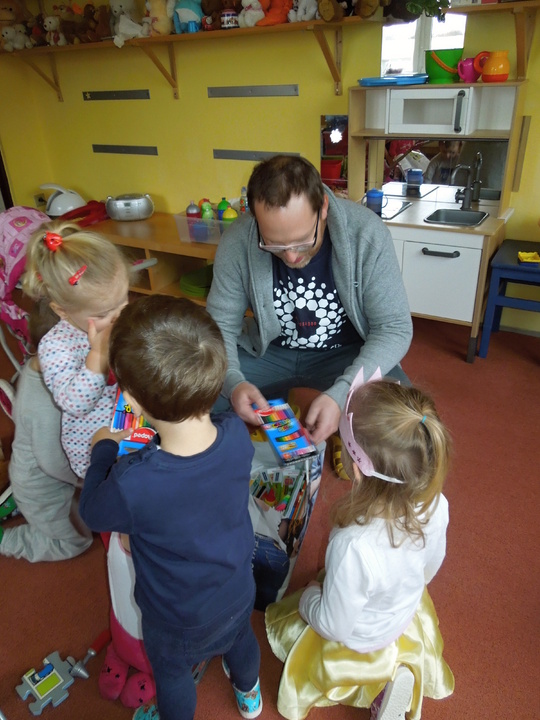 Při osobní návštěvě pana Milana Boušky byli centráckým dětem předány výtvarné potřeby – papíry, pastelky, lepidla, nůžky … a darovací poukaz na krásných 500 dolarů!!! Tato částka bude využita na podporu činnosti integračních projektů pro děti a mládež s postižením a my za to moc a moc děkujeme!!!