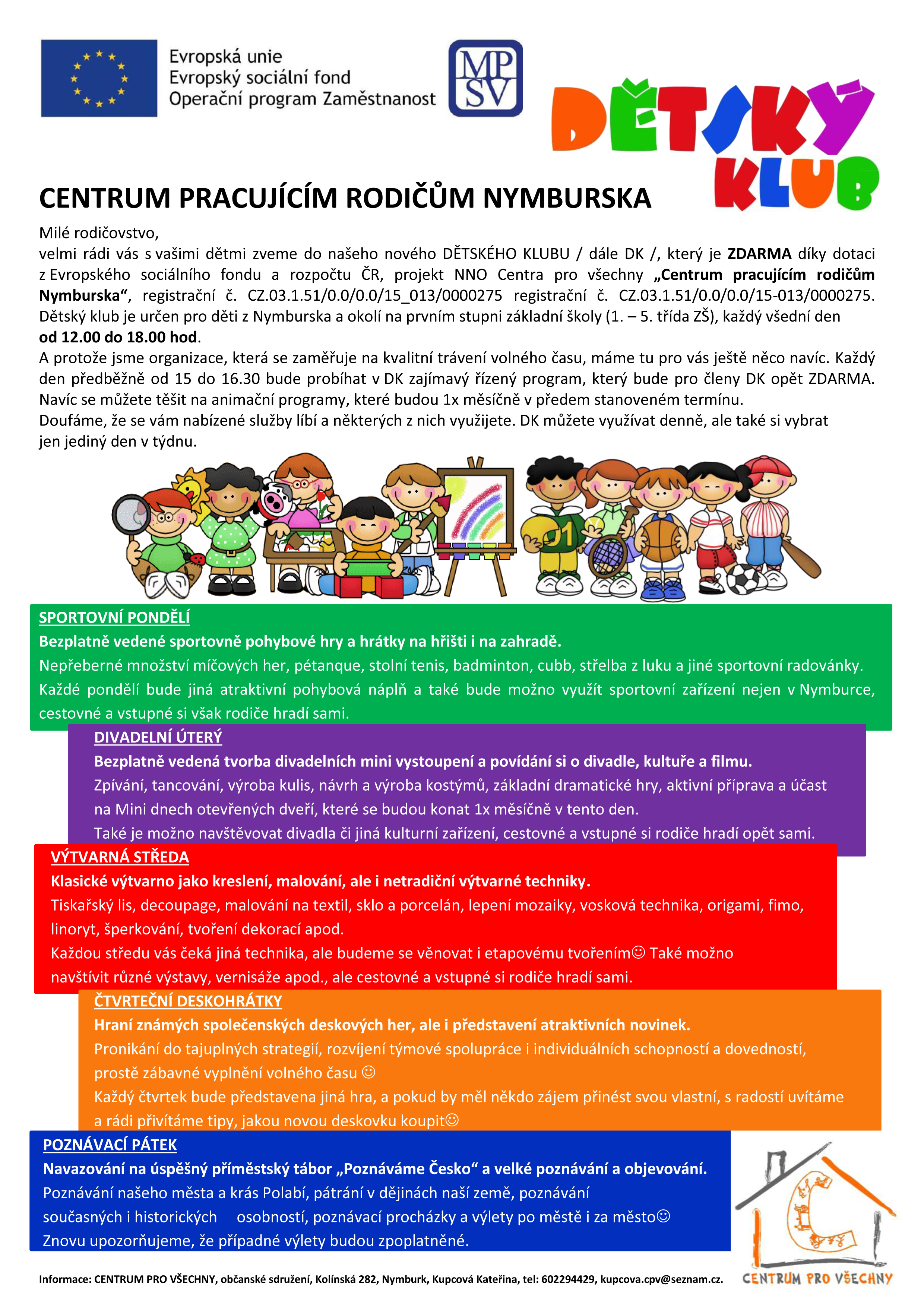 V rámci animačního programu Dětského klubu bude v úterý 20. září od 16:30 probíhat úžasné skupinové bubnování pod vedením zkušeného hudebníka, který bude udávat rytmus a postará se o úžasnou atmosféru http://www.bubnujeme.cz.