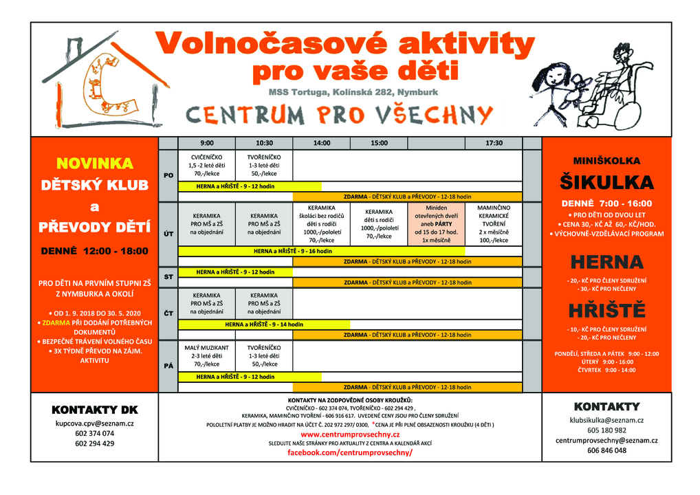 Všem bychom rádi vzkázali, že dopolední kroužky, tak jak jsou psány, určitě stále fungují, ale jejich provoz má svá pravidla, asi tím nejdůležitějším kritériem je minimální počet účastníků a to jsou 3 platící účastníci na lekci.